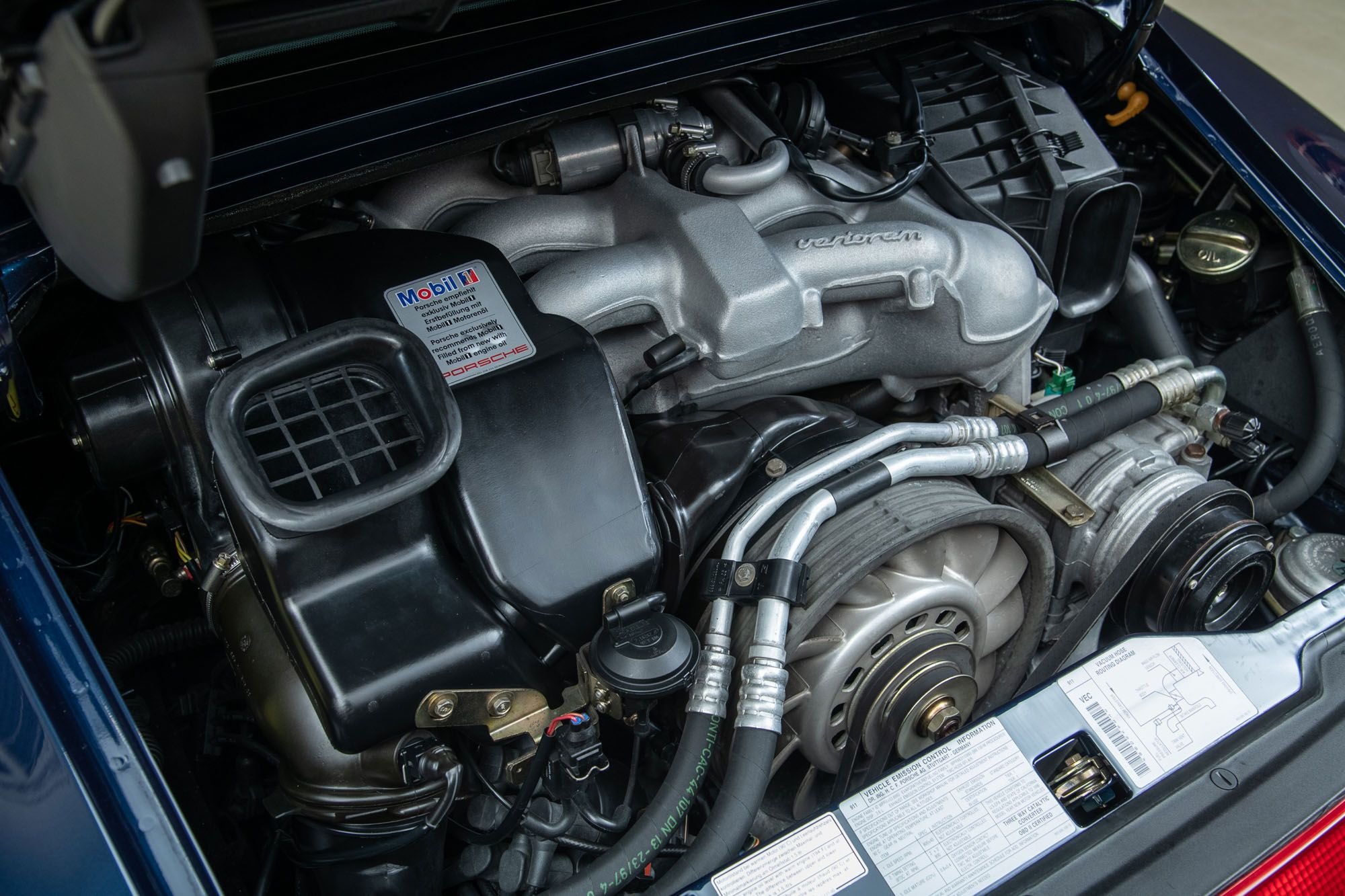 Upon arrival at Canepa, the car was thoroughly checked both cosmetically and mechanically. Still in the same condition as it left, this Ocean Blue Metallic C2S is a rarity. Preparing for Canepa’s showroom, the 911 went through the “Canepa Difference” process where the original Ocean Blue Metallic paint received a foam-pad polish to enhance the already impressive luster, and all surfaces throughout the car were cleaned. As expected, the 911 did not need very much attention due to its fantastic caretakers and their treatment of the car for the last 28 years.