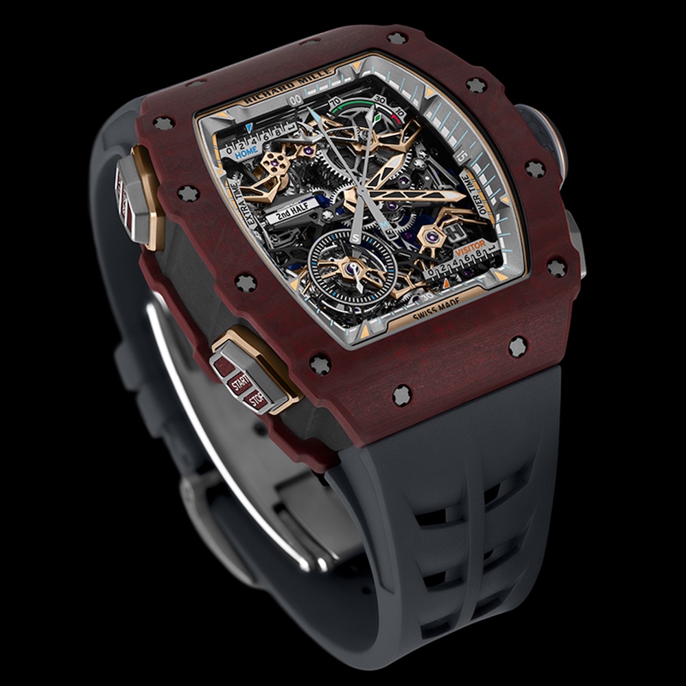 The new RM 41-01 Tourbillon Soccer tackles a unique challenge, fully tracking a match through the prism of Haute Horlogerie. The team spent five years developing an entirely novel, patented tourbillon flyback chronograph calibre. Two new complications are introduced here: the match-phase indication and the mechanical goal counter, demonstrating the Brand’s ability to merge sport-specific functionality with advanced mechanical watchmaking.